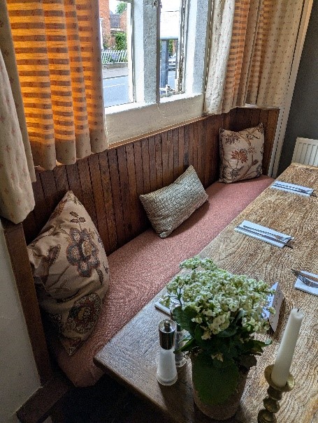 This summer we have been approached by some restaurants and pubs in the local Warwickshire area to help refresh their décor, including reupholstering seating and adding cushions. It has been an exciting transition for us, and we have really enjoyed tackling commercial settings. The regulations for what we can use are a lot stricter, for obvious reasons, and it has been very interesting researching the commercial fabrics that are now available. There have been massive improvements in the commercial market and the colours, patterns and textures are so much more inspiring than they once were.
